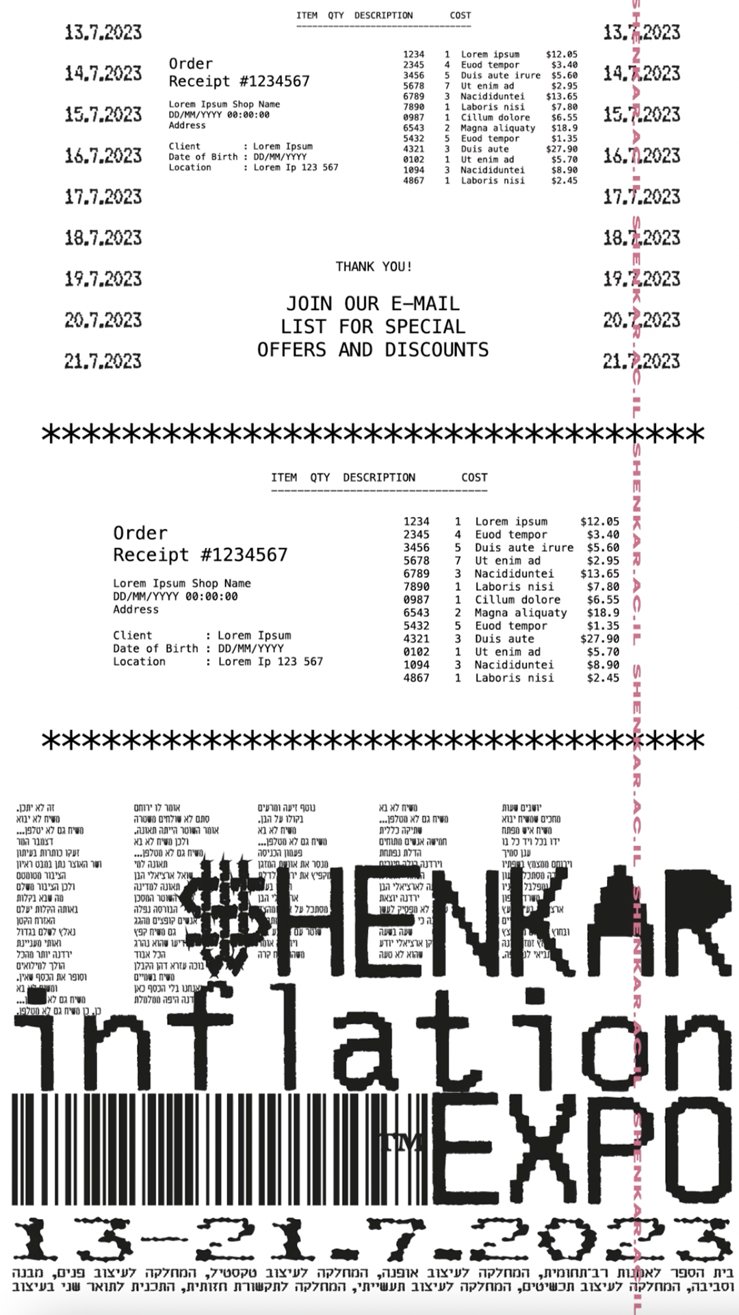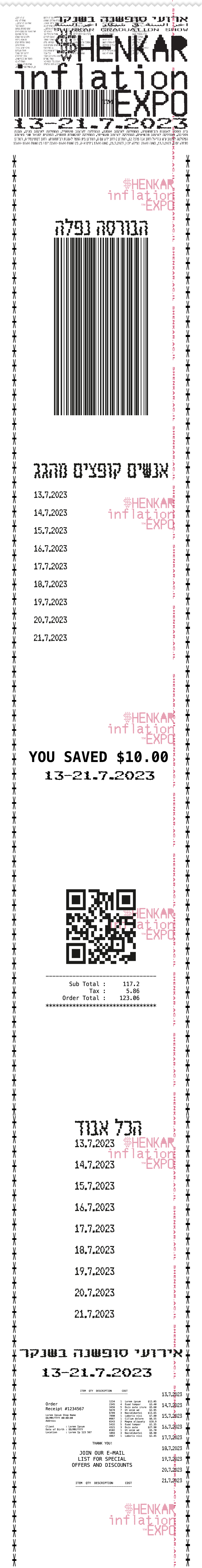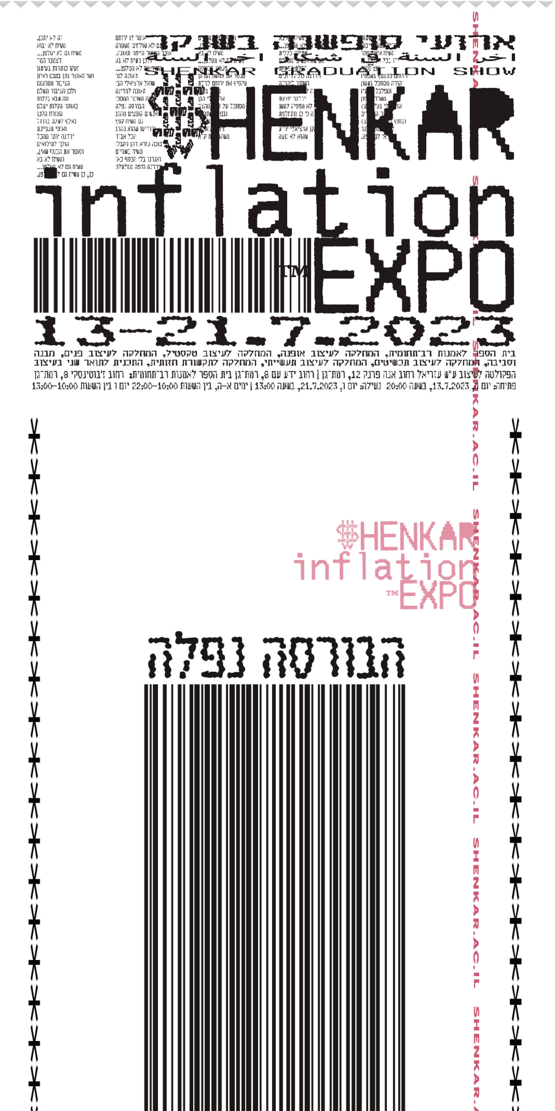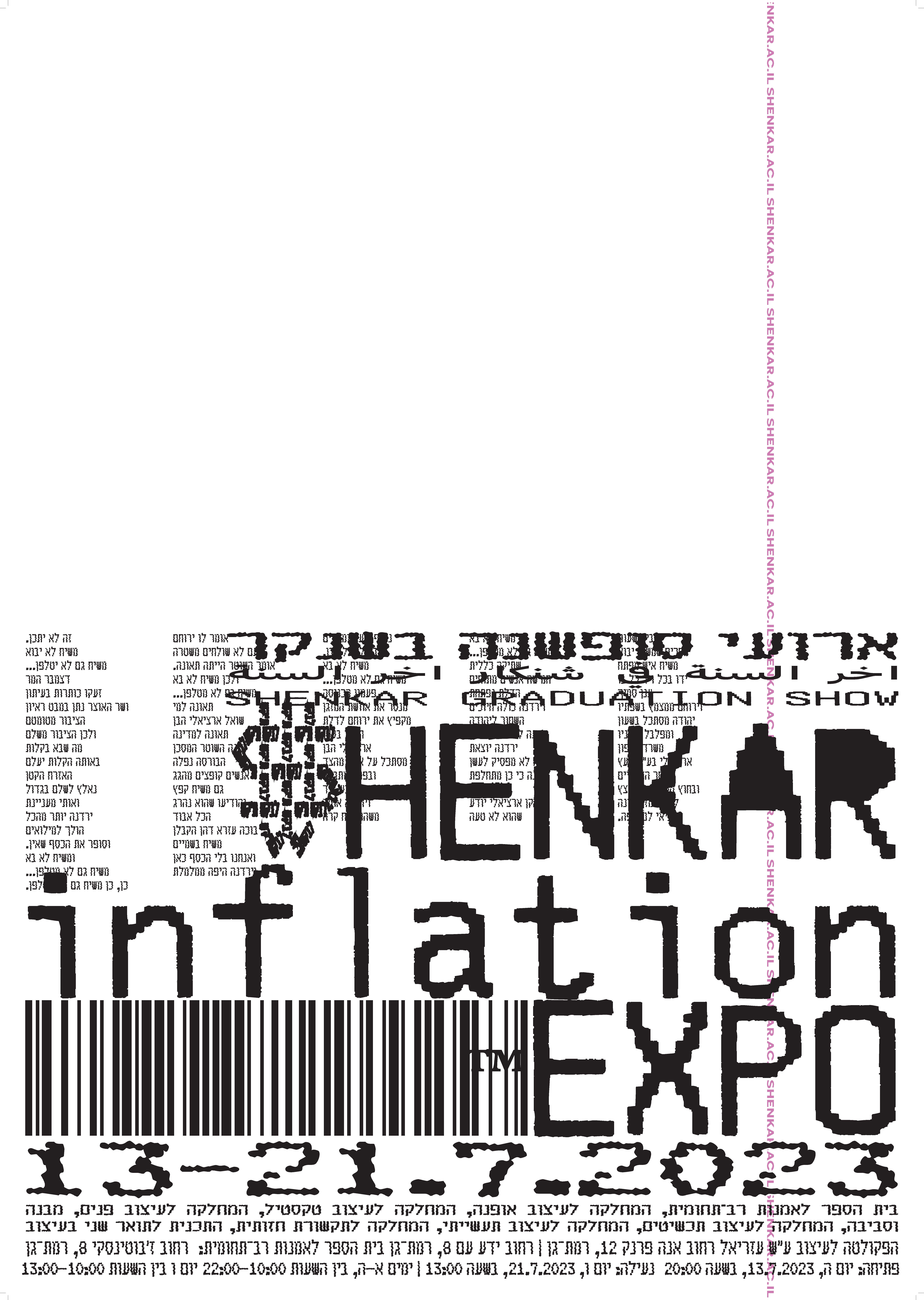 The “Inflation Expo” branding project was developed as part of a third-year branding course, emphasizing typography. Created to showcase the Shenkar College year-end events and graduation exhibitions, the branding spans multiple mediums: print, animation, and interactive elements providing a cohesive and dynamic visual identity. The project focuses on creating a versatile typographic language that can be adapted across various platforms, enhancing the visual impact and accessibility of the exhibitions.
